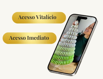 Fazendo parte da turma Macarons Para Todos, você garante o bônus de acesso ao curso por tempo ilimitado.